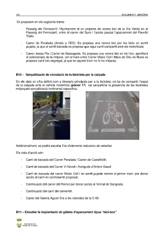 de la calçada amb el vehicle motoritzat (plànol 17) cal senyalitzar la presència de les bicicletes
