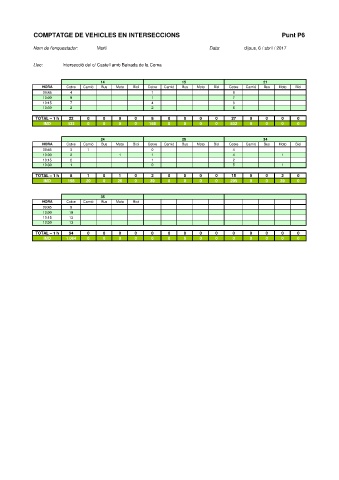 COMPTATGE DE VEHICLES EN INTERSECCIONS Punt P6