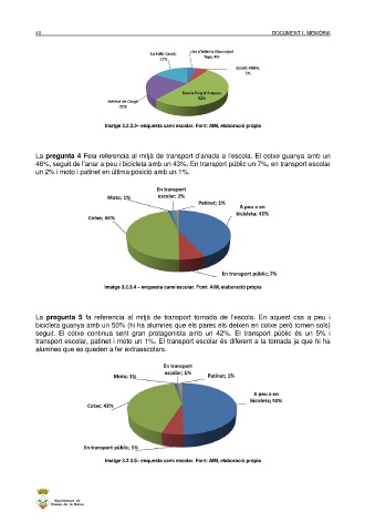 46%, seguit de l’anar a peu i bicicleta amb un 43%. En transport públic un 7%, en transport escolar