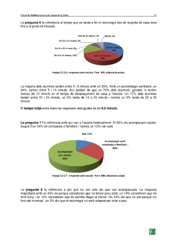 La pregunta 7 Fa referència amb qui van a l’escola habitualment. El 64% els acompanyen adults.