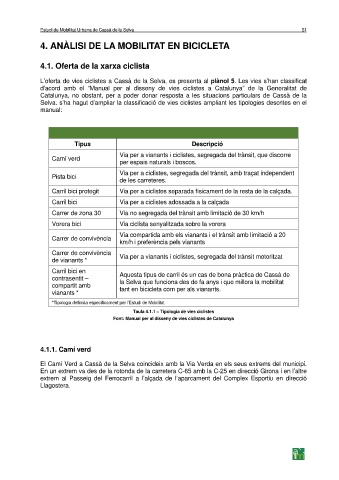 Taula 4.1.1 – Tipologia de vies ciclistes