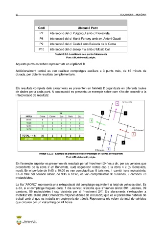 Addicionalment també es van realitzar comptatges auxiliars a 3 punts més, de 15 minuts de